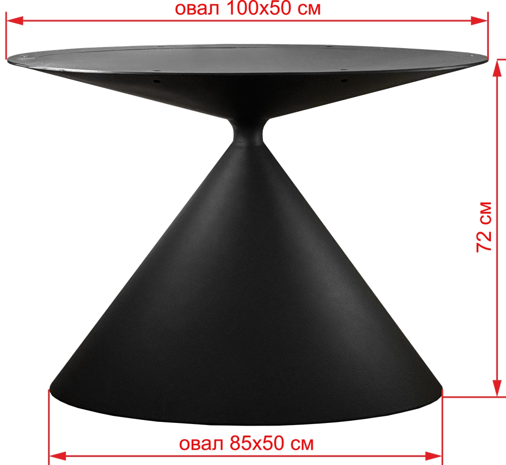 Подстолье из стали матовое черного цвета. Рекомендуемый размер столешницы: овал 150х100.