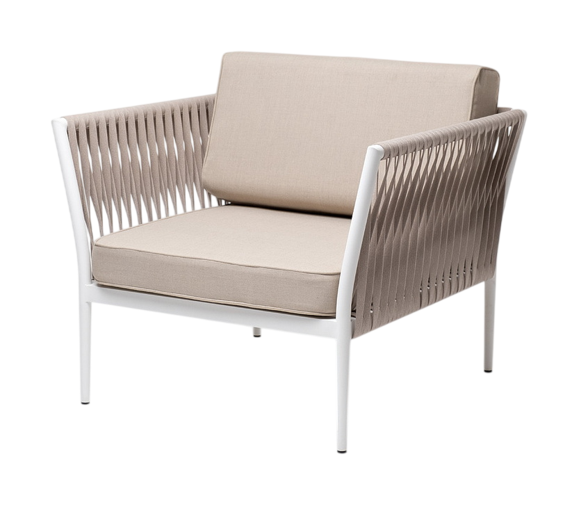 - Описание: Плетеное кресло «Касабланка» с подушками в комплекте.Кресло имеет алюминиевый каркас, окрашенный порошковой краской. Боковины каркаса вручную оплетены роупом - эластичными синтетическими лентами, изготовленными из высокопрочных полиэфирных волокон.