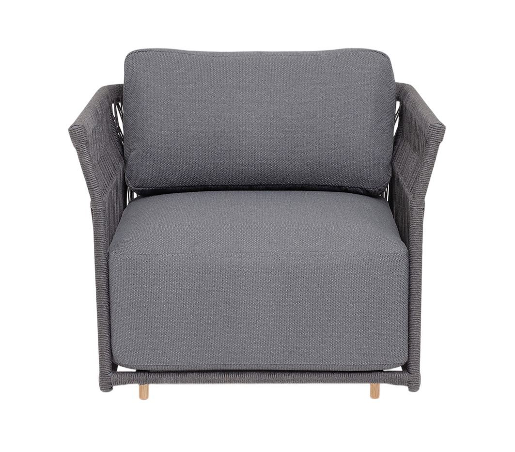 - Описание: Плетеное кресло «Лугано» с подушками в комплекте.Кресло имеет алюминиевый каркас, окрашенный порошковой краской в темно-серый (RAL7024) цвет. Боковины каркаса и спинка вручную оплетены роупом - эластичными синтетическими лентами, изготовленными из высокопрочных полиэфирных волокон. Цвет оплетки в тон каркасу - темно-серый. На ножках кресла идут дубовые наконечники (заглушки).