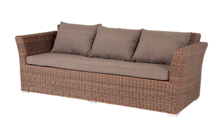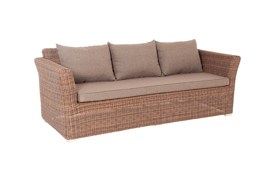 • Описание: Диван «Капучино» предназначается для размещения трех человек. Его основание изготовлено из алюминиевого каркаса, способного выдерживать большие нагрузки. Мебель декорирована ручным круглым плетением, выполненным из искусственного ротанга соломенного цвета. Трехместный диван укомплектован мягкими подушками, которые защищены съёмными чехлами в сером оттенке. При их пошиве используется износостойкий полиэстер, плотность которого достигает 300гр/м2. Предусмотрена влагоотталкивающая пропитка.