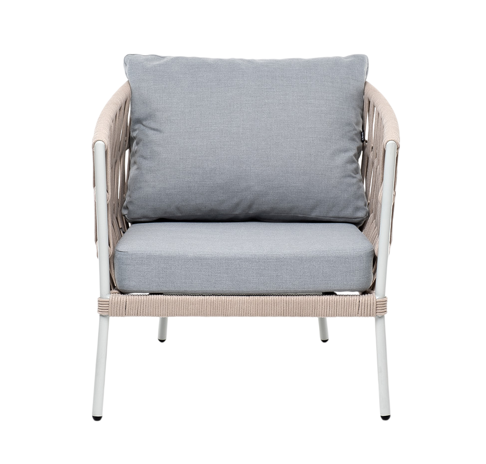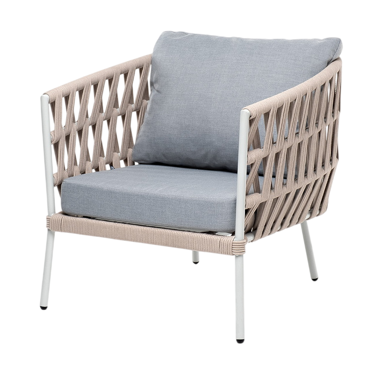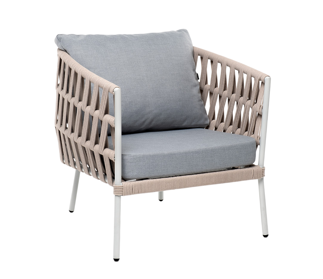 - Описание: Плетеное кресло «Диего» с подушками в комплекте.Кресло имеет алюминиевый каркас, окрашенный порошковой краской. Боковины каркаса вручную оплетены роупом - эластичными синтетическими лентами, изготовленными из высокопрочных полиэфирных волокон.
