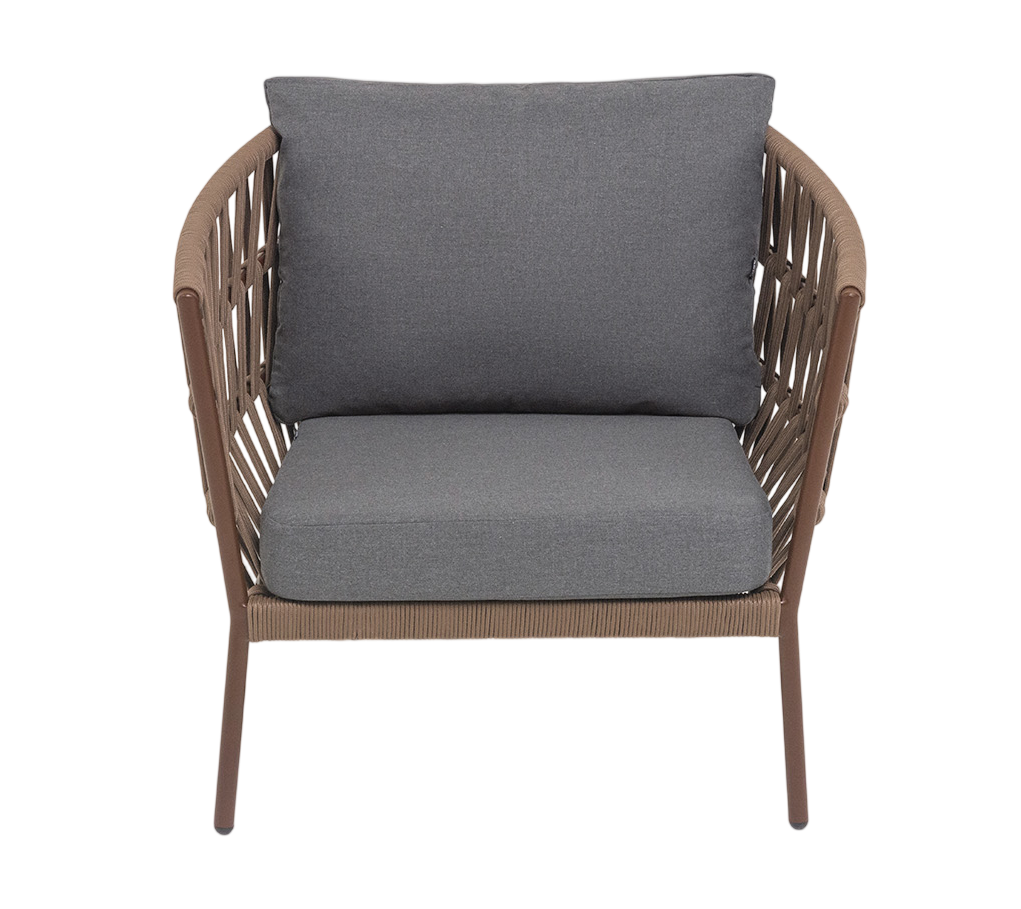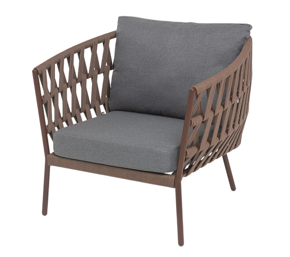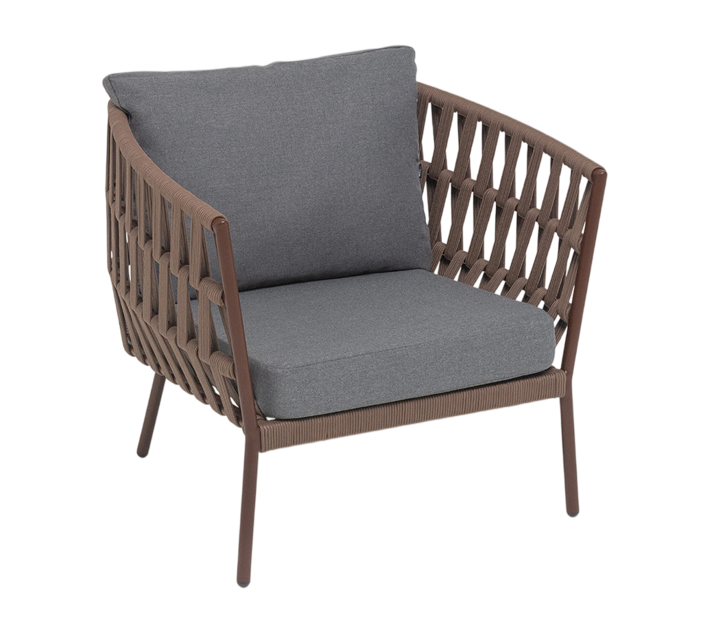 - Описание: Плетеное кресло «Диего» с подушками в комплекте.Кресло имеет алюминиевый каркас, окрашенный порошковой краской. Боковины каркаса вручную оплетены роупом - эластичными синтетическими лентами, изготовленными из высокопрочных полиэфирных волокон.