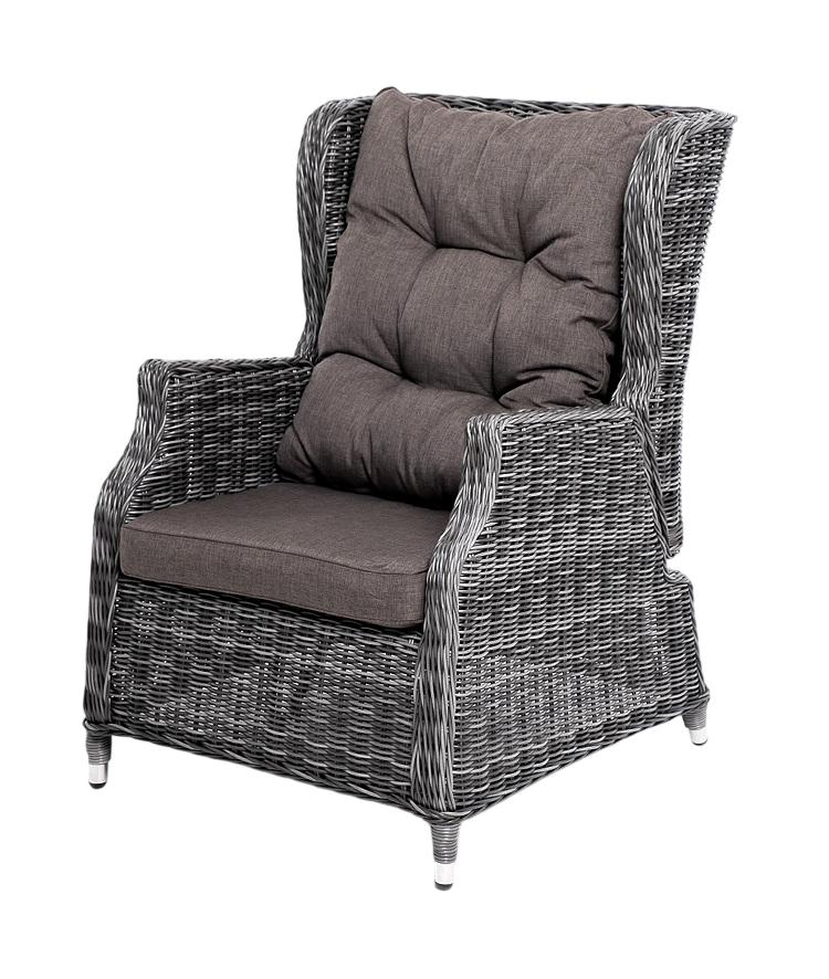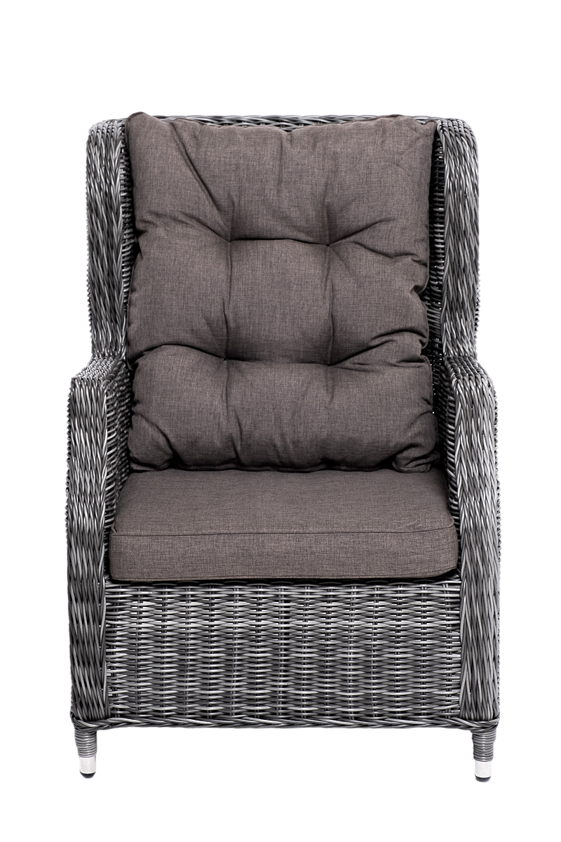 - Преимущество: Садовое кресло дополнено практичными подушками для комфортного размещения. Они выполнены в сером цвете из полиэстера, плотность которого достигает 300гр/м2. Материал имеет влагоотталкивающую пропитку.
