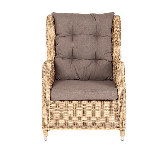 - Преимущество: Садовое кресло дополнено практичными подушками для комфортного размещения. Они выполнены в сером цвете из полиэстера, плотность которого достигает 300гр/м2. Материал имеет влагоотталкивающую пропитку.