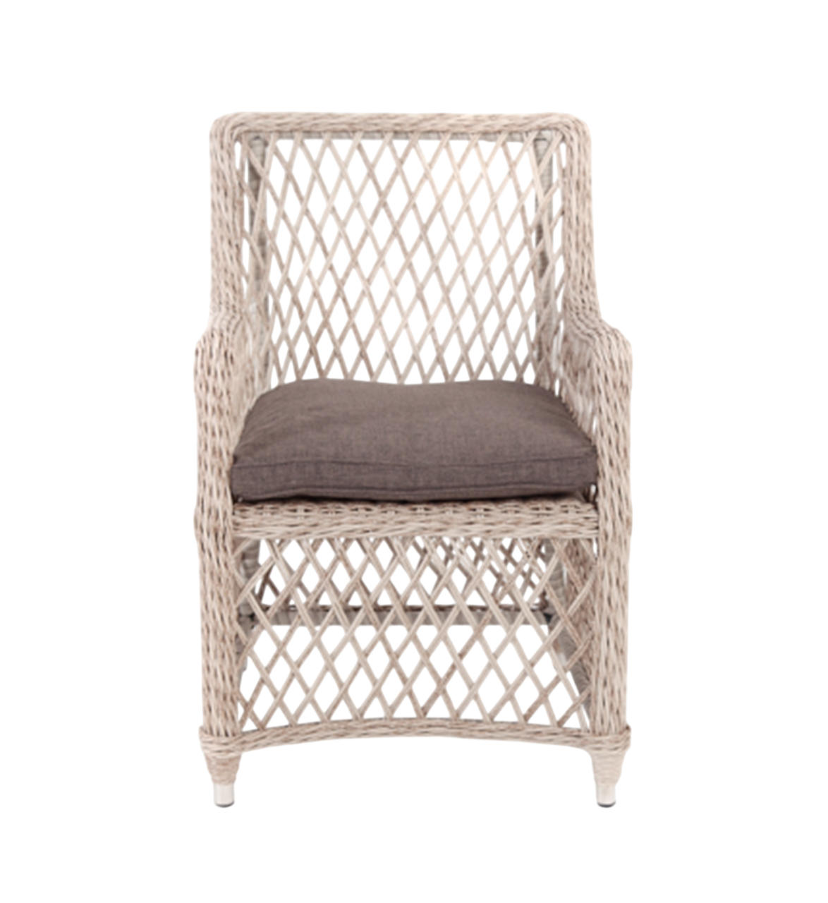 Описание: материал изготовления - искусственный ротанг, обивка - ткань, ножки - металл, подлокотники - есть, спинка - металл Есть комплектный столик