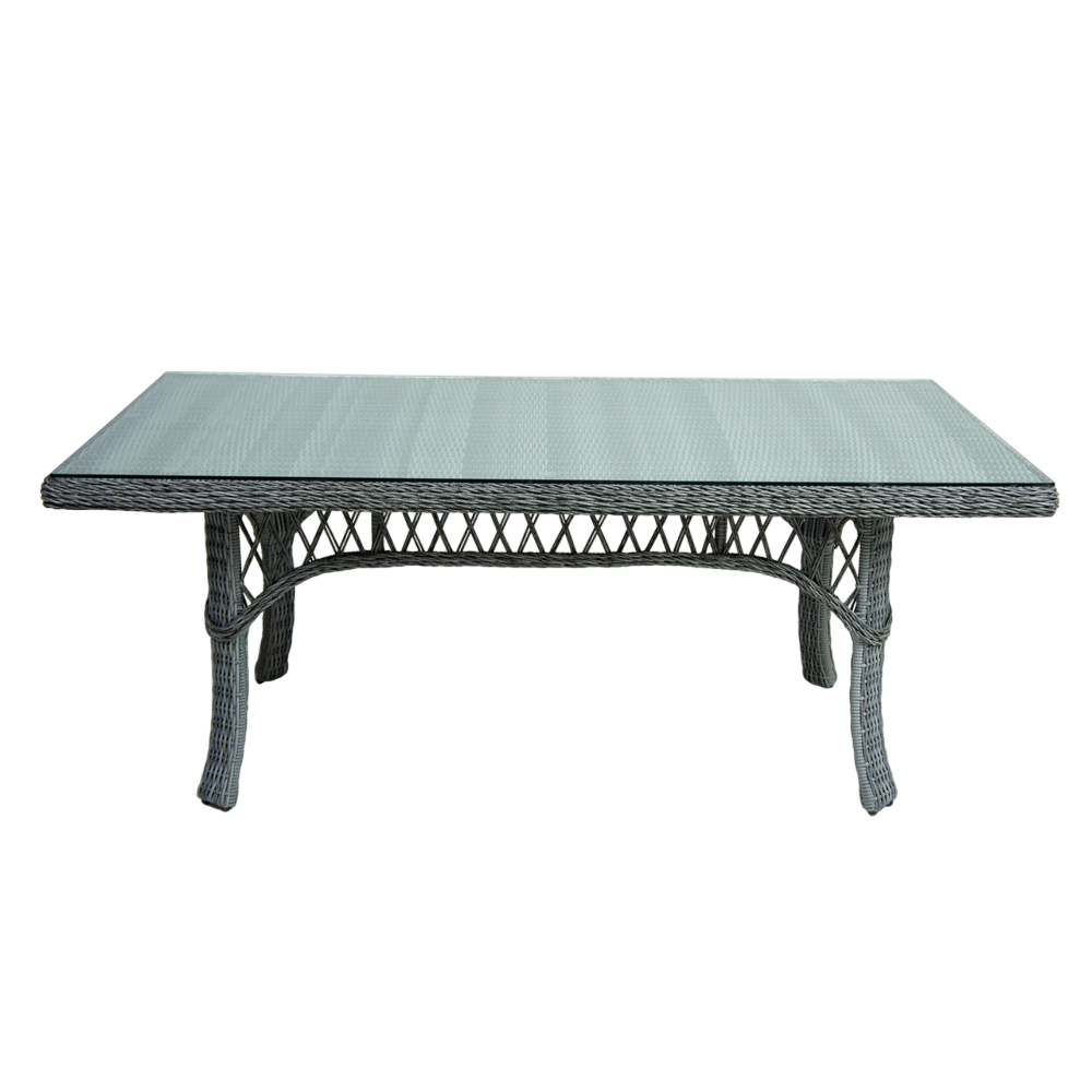 Описание: материал изготовления - искусственный ротанг, ножки - металл, столешница - стекло, форма опоры - отдельные ножки Закаленное стекло 6 мм. Цвет серый