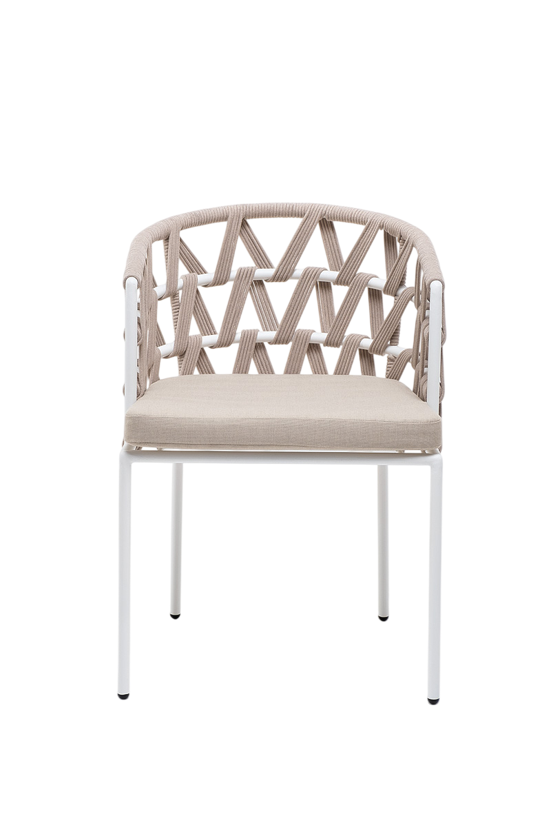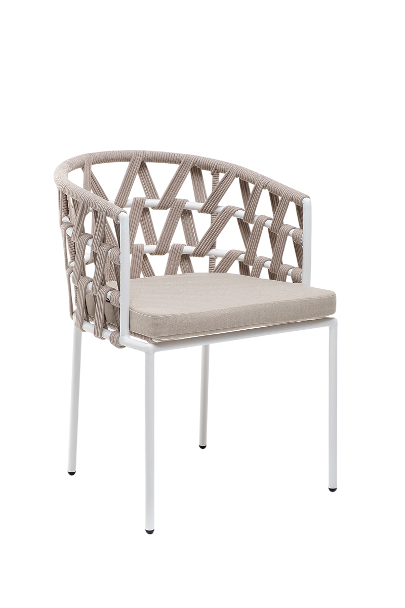 - Описание: Стул «Диего» изготовлен из стального каркаса, окрашенного порошковой износостойкой краской. Каркас вручную оплетен бежевым роупом - эластичными синтетическими лентами из высокопрочных полиэфирных волокон.