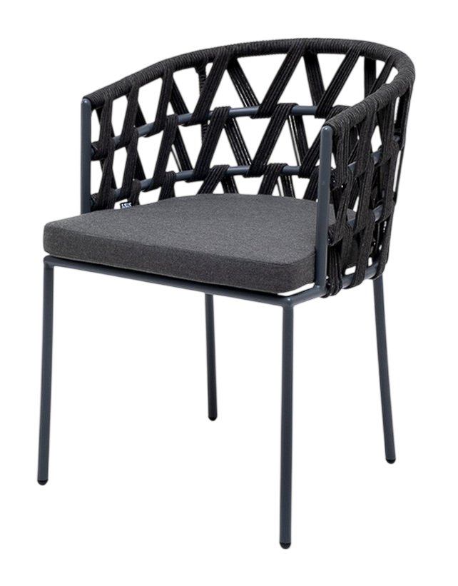 - Описание: Стул «Диего» изготовлен из стального каркаса, окрашенного порошковой износостойкой краской. Каркас вручную оплетен бежевым роупом - эластичными синтетическими лентами из высокопрочных полиэфирных волокон.