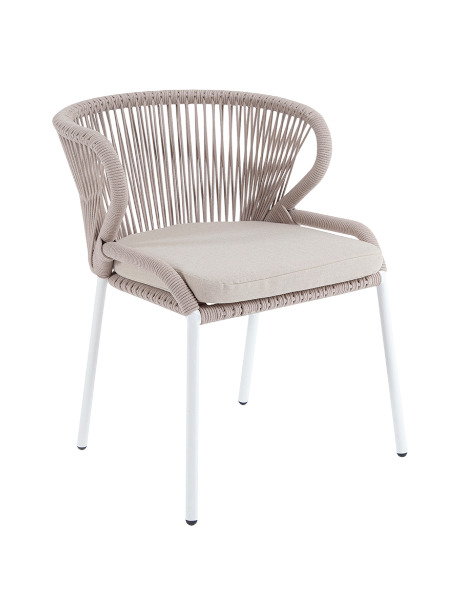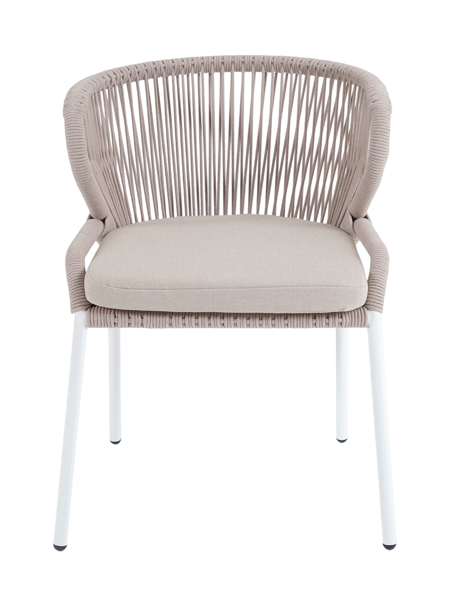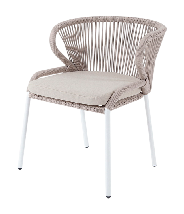 - Описание: Стул «Милан» для обустройства обеденной или лаунж-зоны. Изготовлен из алюминиевого каркаса, оплетенного вручную эластичными синтетическими лентами из высокопрочных полиэфирных волокон (роуп круглый)
