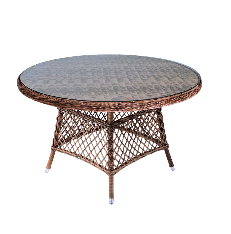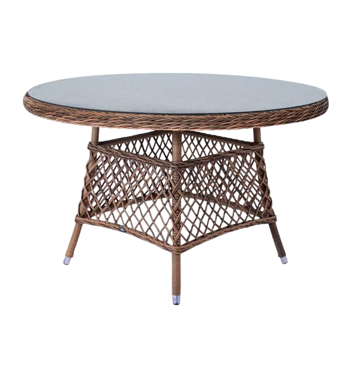 Описание: материал изготовления - искусственный ротанг Диаметр плетеного стола – 1180 мм, высота - 750 мм.