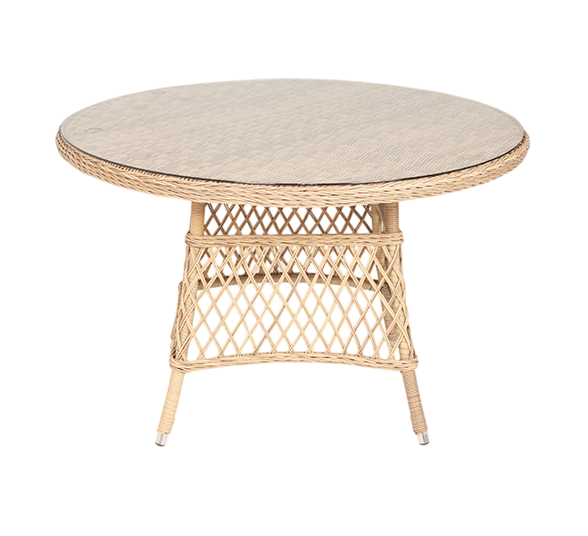 Описание: материал изготовления - искусственный ротанг Диаметр плетеного стола – 1180 мм, высота - 750 мм.