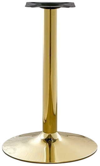 Подстолье металлическое. Труба и основание-хром золотого цвета (нитрид титана). Основание "рюмочкой". Рекомендуемый размер столешницы: Ø70, 70х70.