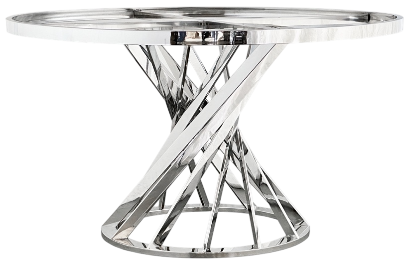 Подстолье из полированной нержавеющей стали (зеркальное). Лаковое покрытие. Рекомендуемый размер столешницы: Ø150.