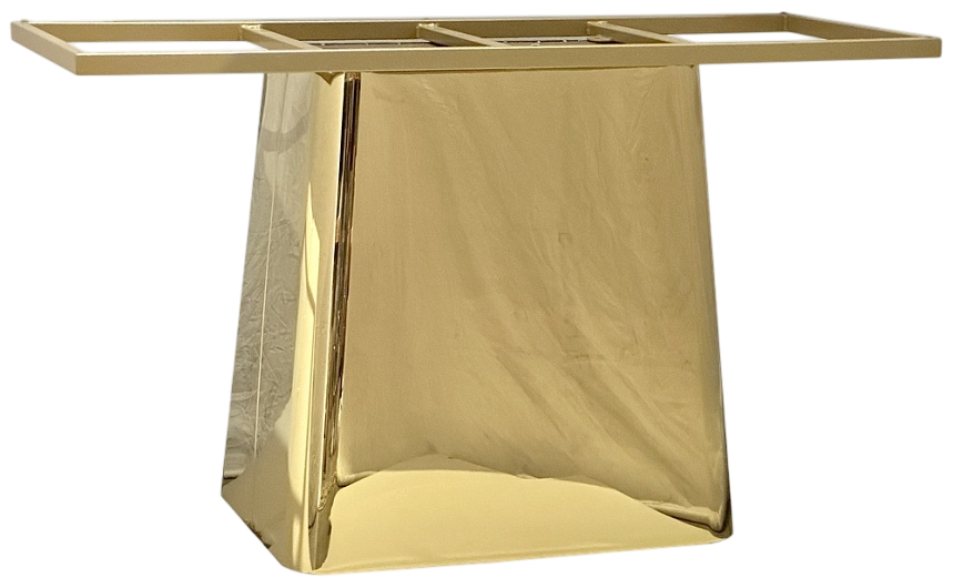 Подстолье из полированной нержавеющей (зеркальное) стали золотого цвета (нитрид титана). Рекомендуемый размер столешницы: 140х90.