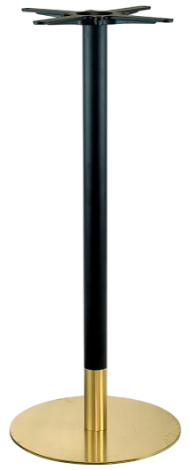 Подстолье. Нижняя часть из полированной нержавеющей стали (матовое) золотого цвета. Верхняя часть из стали покрытой черным порошком. Рекомендуемый размер столешницы: Ø70
