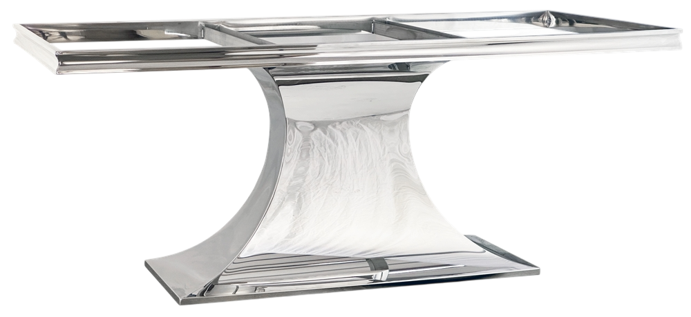 Подстолье из полированной нержавеющей стали (зеркальное). Лаковое покрытие. Рекомендуемый размер столешницы: 210х100.