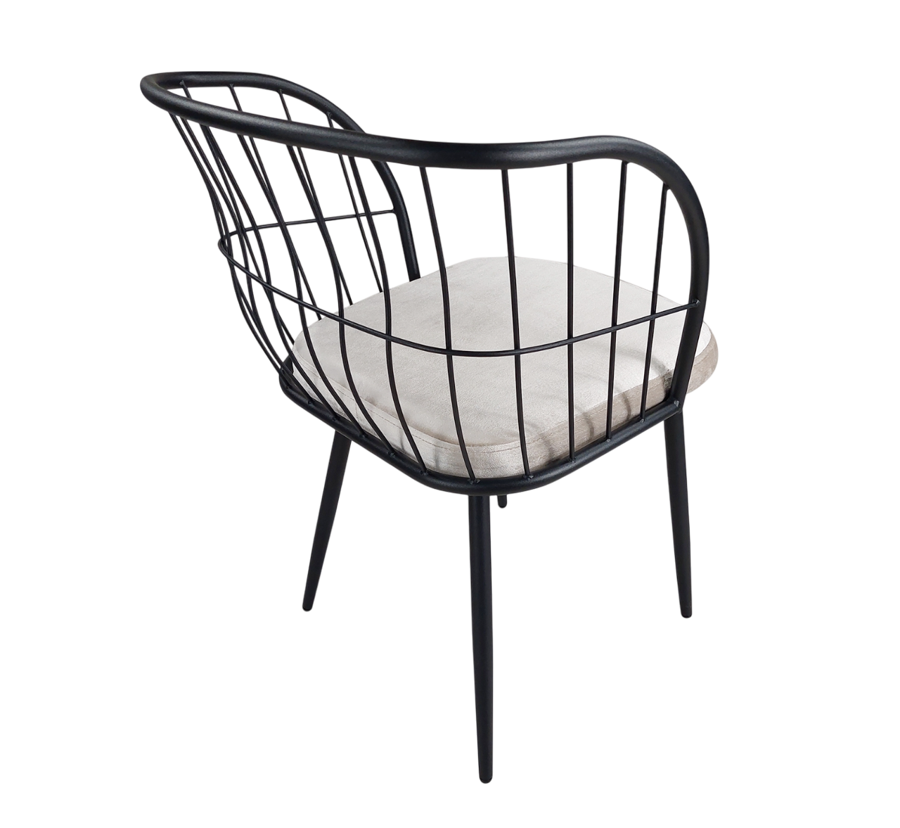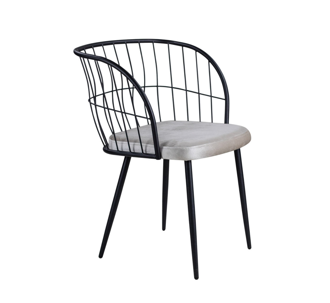 Описание: материал изготовления - металл, обивка - велюр, ножки - металл, форма опоры - отдельные ножки, подлокотники - есть, покрытие - нет Максимальная статическая нагрузка на стул - 150 кг.