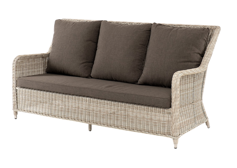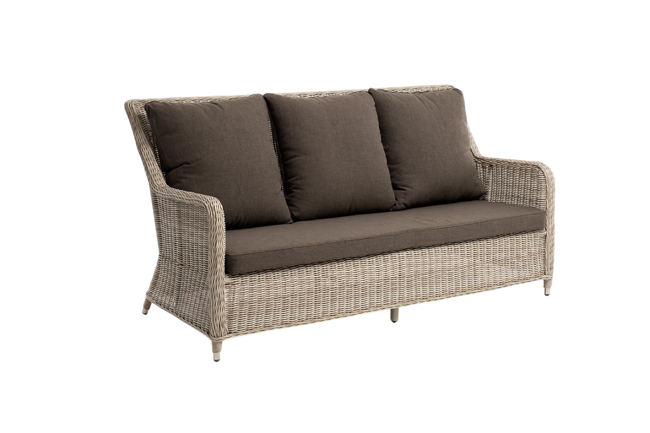 - Преимущество: Диван выполнен из круглого искусственного ротанга соломенного цвета, оплетенного вручную.