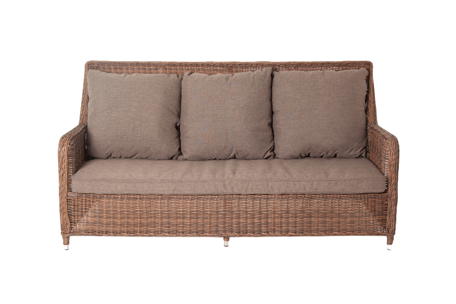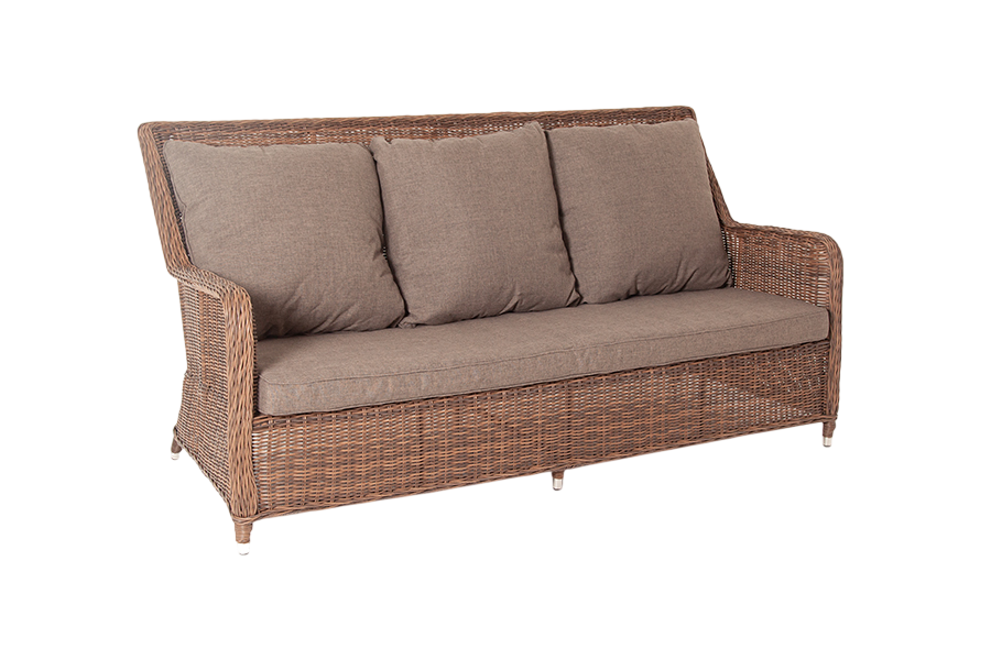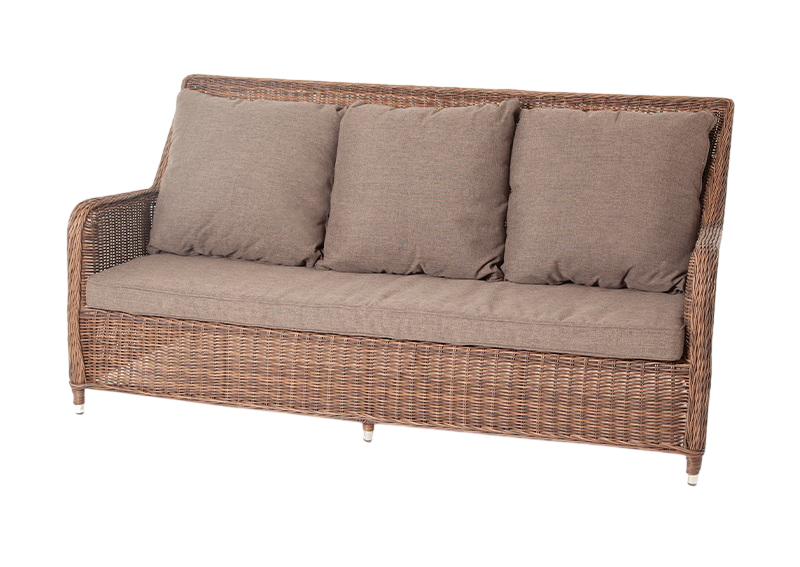 - Преимущество: Диван выполнен из круглого искусственного ротанга соломенного цвета, оплетенного вручную.