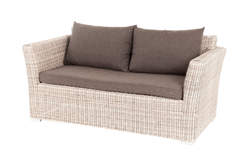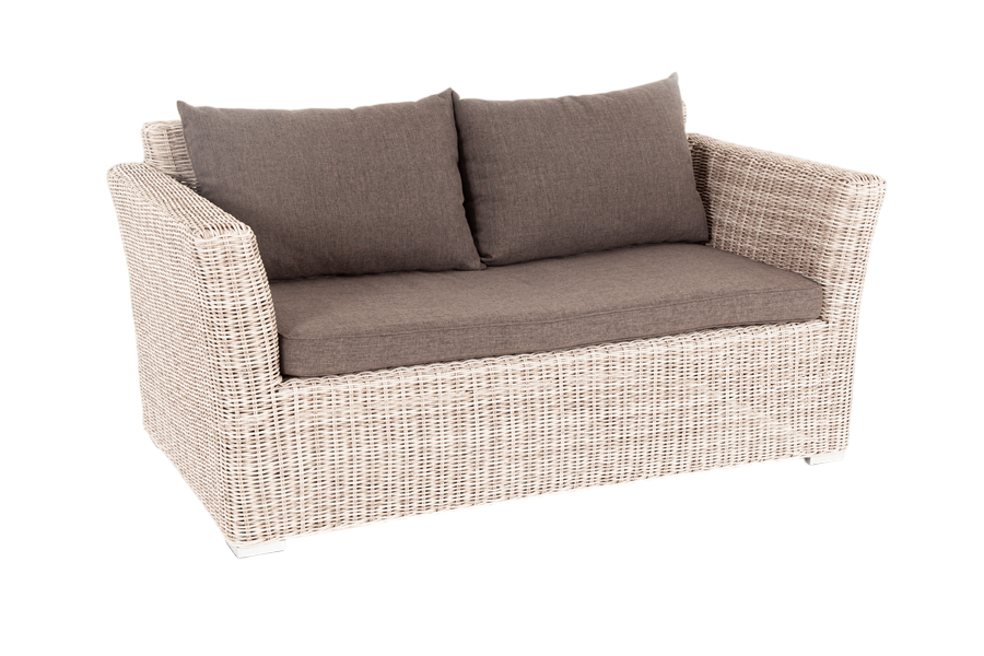 - Преимущество: Диван выполнен из круглого искусственного ротанга соломенного цвета, оплетенного вручную.