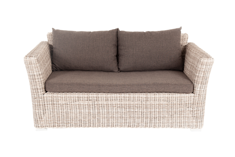 - Описание: Двухместный диван дополнен несколькими подушками со съёмными чехлами серого цвета. Они изготовлены из прочного полиэстера, плотность которого достигает 300гр/м2. Предусмотрена влагоотталкивающая пропитка ткани для защиты текстильных изделий от намокания.