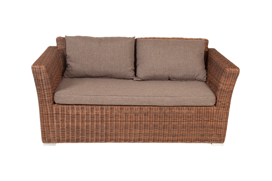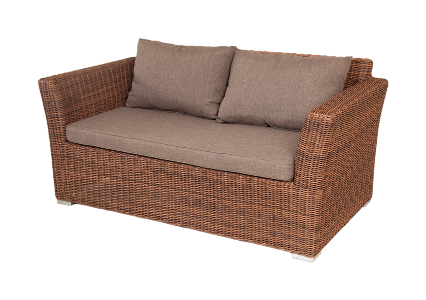 - Преимущество: Диван выполнен из круглого искусственного ротанга соломенного цвета, оплетенного вручную.