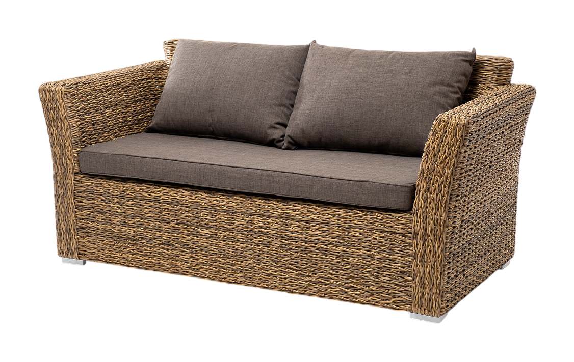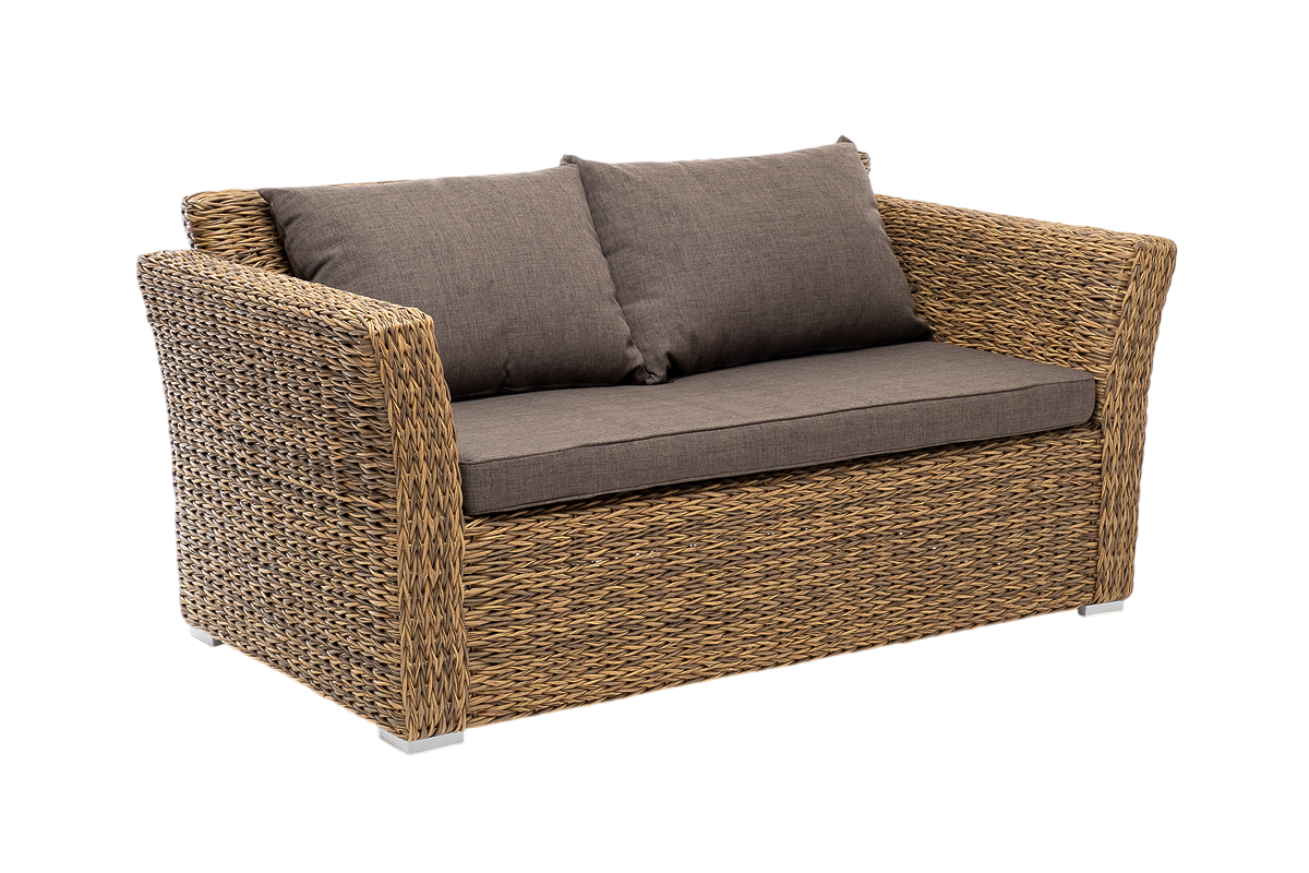 - Преимущество: Диван выполнен из круглого искусственного ротанга соломенного цвета, оплетенного вручную.