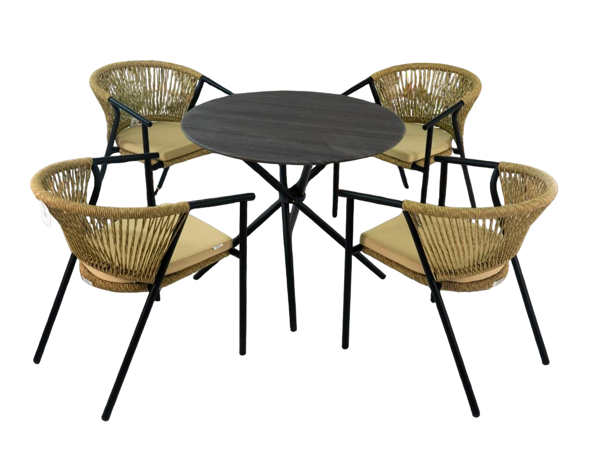 - Размеры: Стол квадратный 800x800x750 мм, Кресло 780x850x900 мм (4 шт).