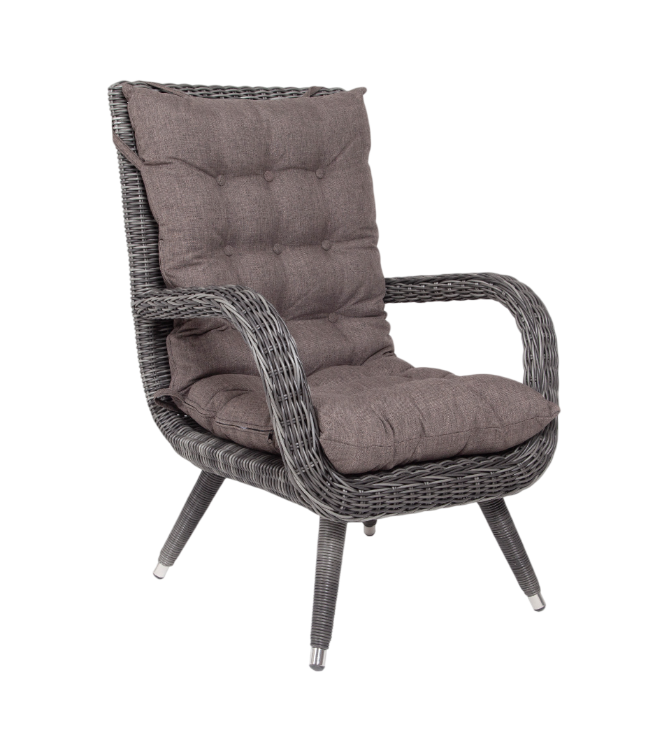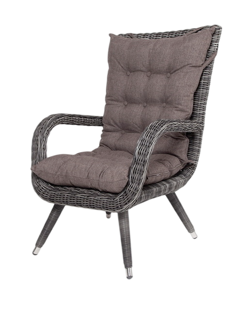 - Преимущество: Садовое кресло дополнено мягкими подушками для комфортного размещения. При их пошиве используется полиэстер с плотностью 300гр/м2. Влагоотталкивающая пропитка усиливает защитные свойства материала.