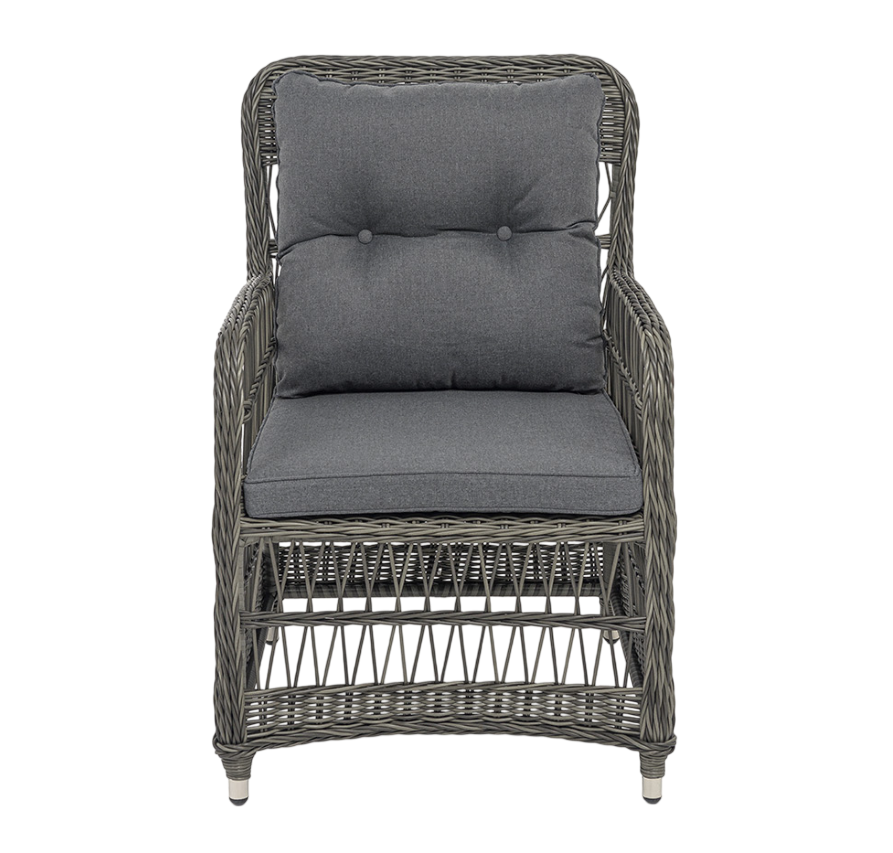- Преимущество: Садовое кресло располагает двумя мягкими подушками, которые идут в комплекте. Они выполнены в сером цвете. Полиэстер высокого качества используется при пошиве тканевых изделий. Его плотность 300гр/м2. Ткань обрабатывается влагоотталкивающей пропиткой.
