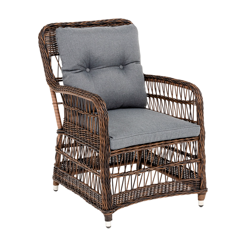 - Описание: Кресло «Цесена» имеет практичные подлокотники для удобного размещения во время отдыха.Алюминиевый каркас находится в основе мебели. Он характеризуется устойчивостью и высокой прочностью. Задекорирован ручной круглой оплеткой, которая сделана из искусственного ротанга.