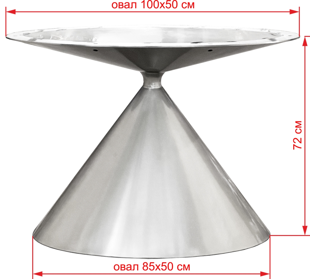 Подстолье из нержавеющей стали. Рекомендуемый размер столешницы: овал 150х100.
