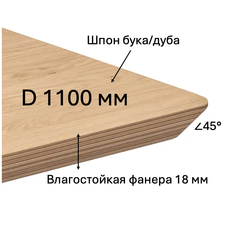 - Описание: основа-влагостойкая фанера, толщина 18 мм. Покрытие шпон дуба/бука, цвет тонировки на выбор.