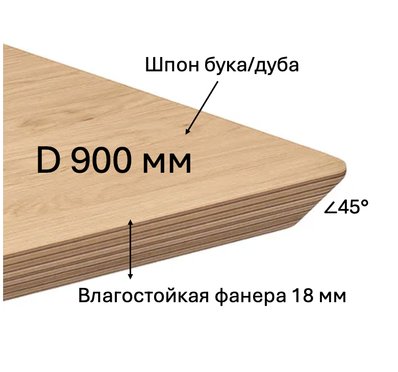 - Описание: основа-влагостойкая фанера, толщина 18 мм. Покрытие шпон дуба/бука, цвет тонировки на выбор.