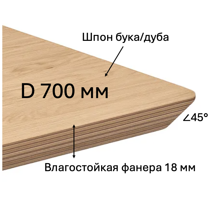 - Описание: основа-влагостойкая фанера, толщина 18 мм. Покрытие шпон дуба/бука, цвет тонировки на выбор.