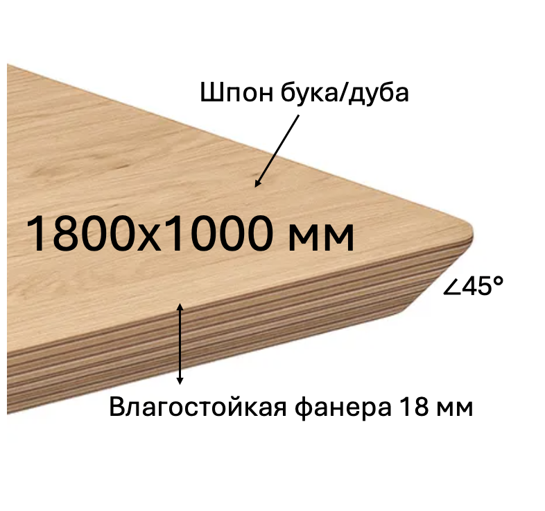 - Описание: основа-влагостойкая фанера, толщина 18 мм. Покрытие шпон дуба/бука, цвет тонировки на выбор.
