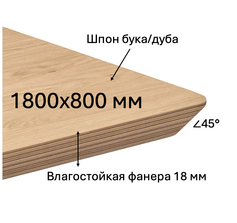 - Описание: основа-влагостойкая фанера, толщина 18 мм. Покрытие шпон дуба/бука, цвет тонировки на выбор.