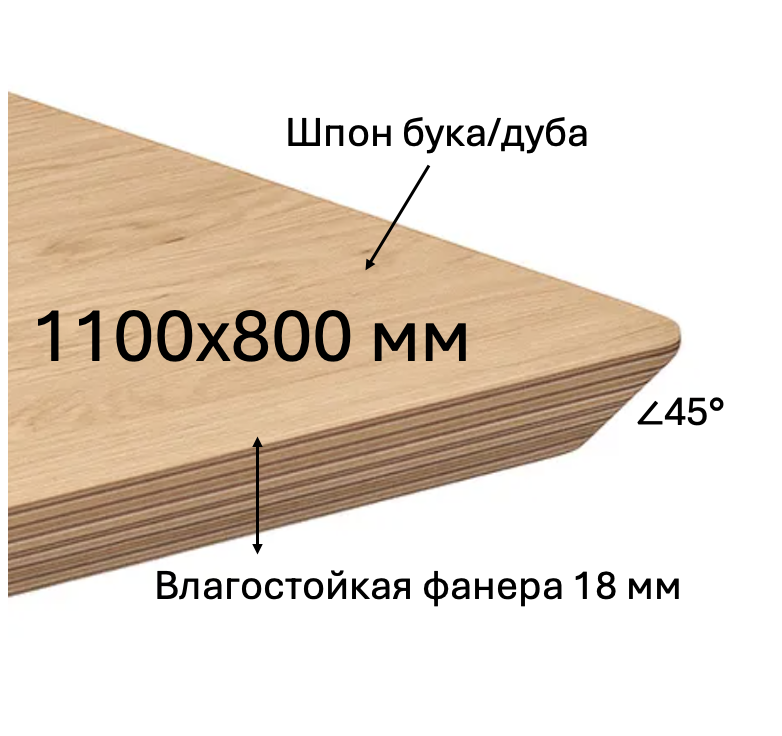 - Описание: основа-влагостойкая фанера, толщина 18 мм. Покрытие шпон дуба/бука, цвет тонировки на выбор.