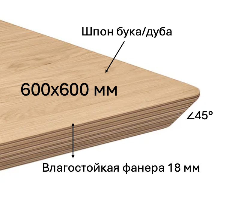 - Описание: основа-влагостойкая фанера, толщина 18 мм. Покрытие шпон дуба/бука, цвет тонировки на выбор.