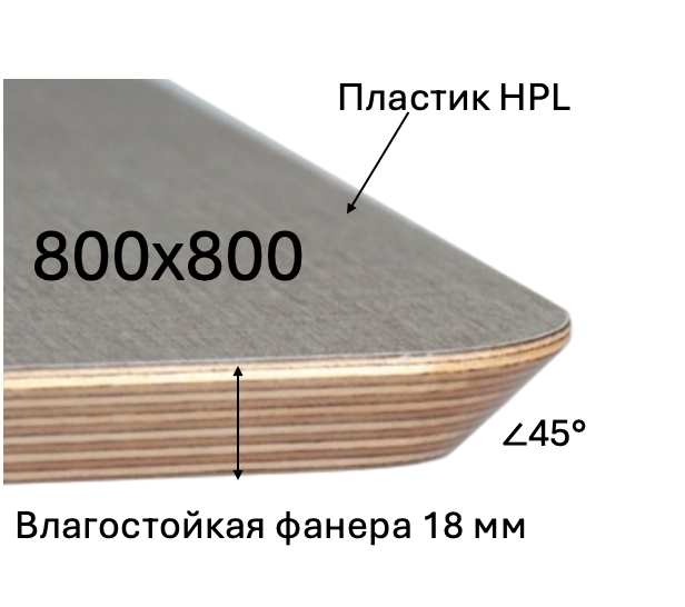 Размеры (мм): 800 х 800 х 18 (ширина, глубина, высота);