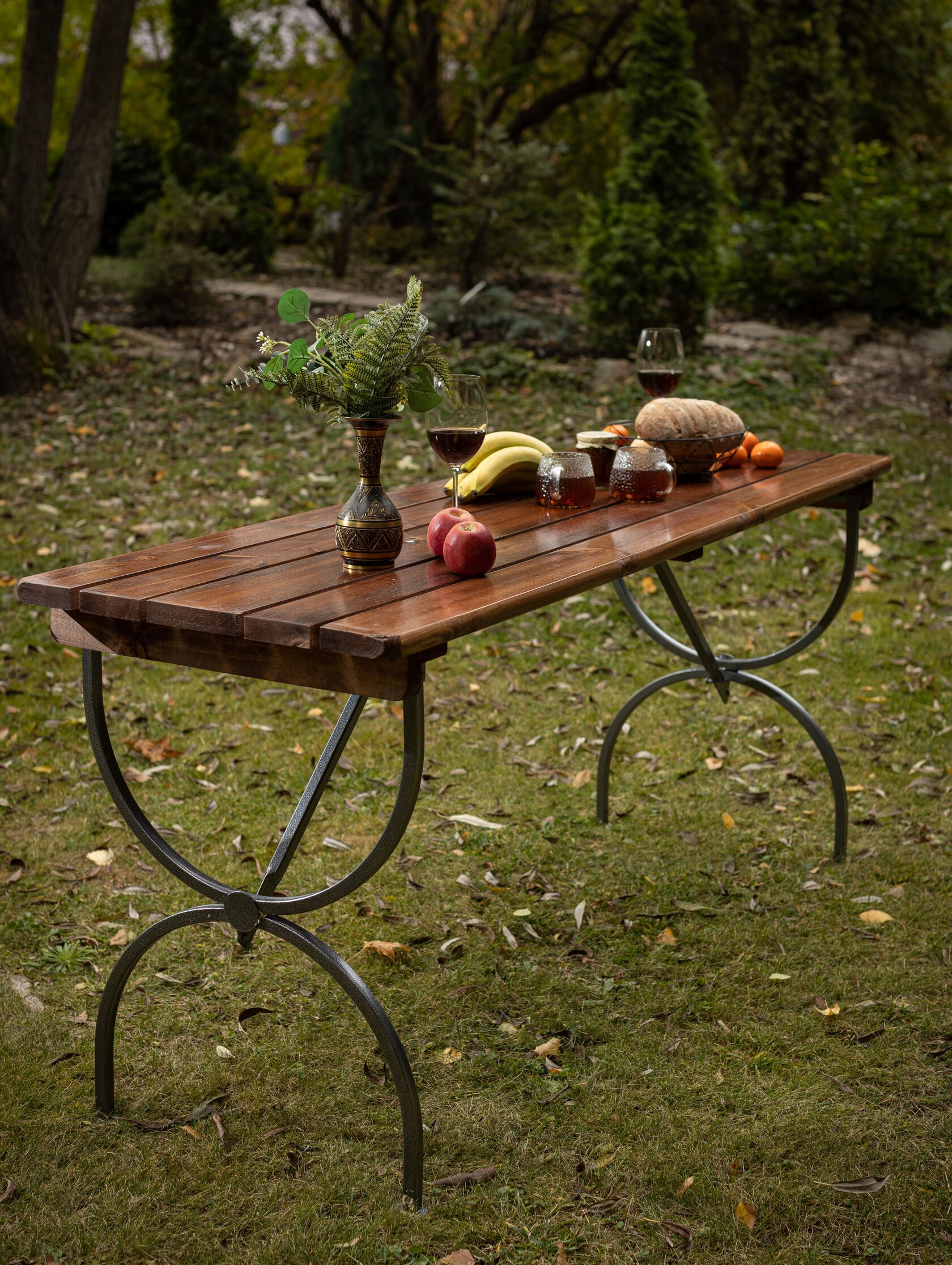 - Описание: стол обеденный садовый в цвете орех - это удобный и практичный складной стол, который станет отличным дополнением для вашего загородного дома или дачного участка. Складная конструкция стола позволяет быстро устанавливать его в рабочем положении и компактно хранить между сезонами. Благодаря стальному каркасу с порошковым покрытием и деревянной столешнице из массива сосны с лаковым покрытием, стол обладает высокой прочностью и долговечностью. Защитная пропитка столешницы в цвете орех, два слоя УФ лака и ударопрочное порошковое покрытие каркаса обеспечивают устойчивость к воздействию внешних факторов и позволяют эксплуатировать стол на открытом воздухе. Простота в обращении и ежедневном уходе делают этот стол незаменимым для комфортного отдыха на природе.