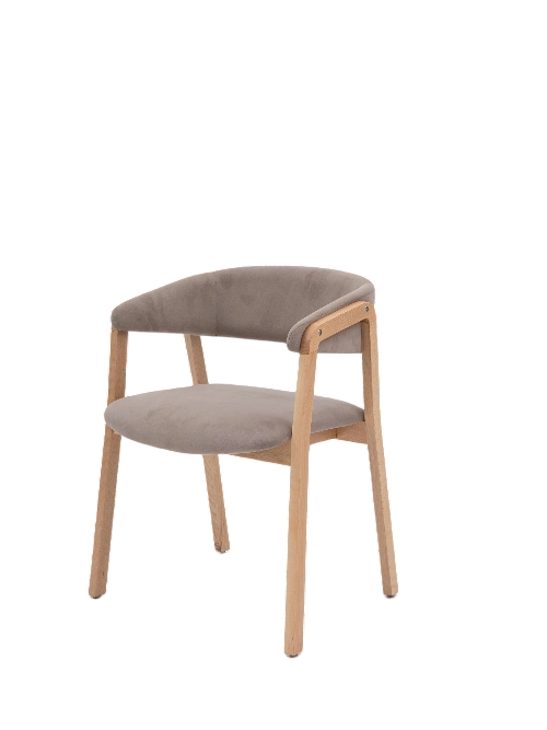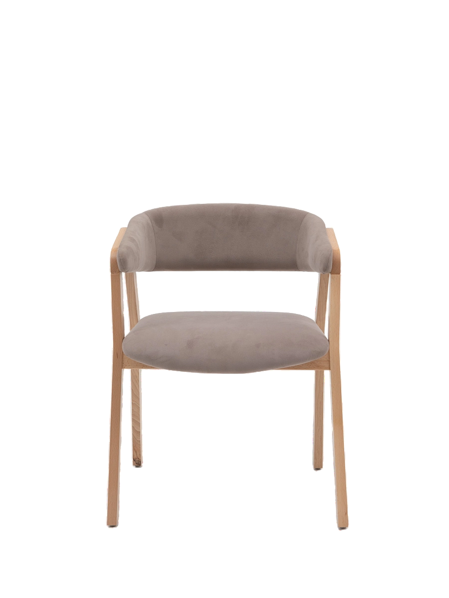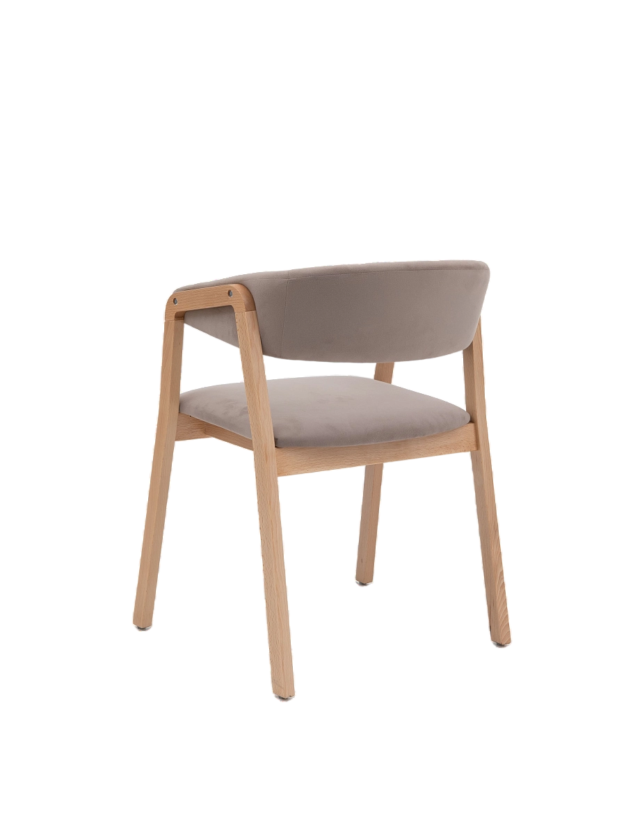 Кресло сочетает в себе основание из массива бука и сиденье и спинку из гнутоклееной фанеры, облицованной тканью. Поставляется в собранном виде. Стулья упакованы в воздушно-пузырчатую пленку.