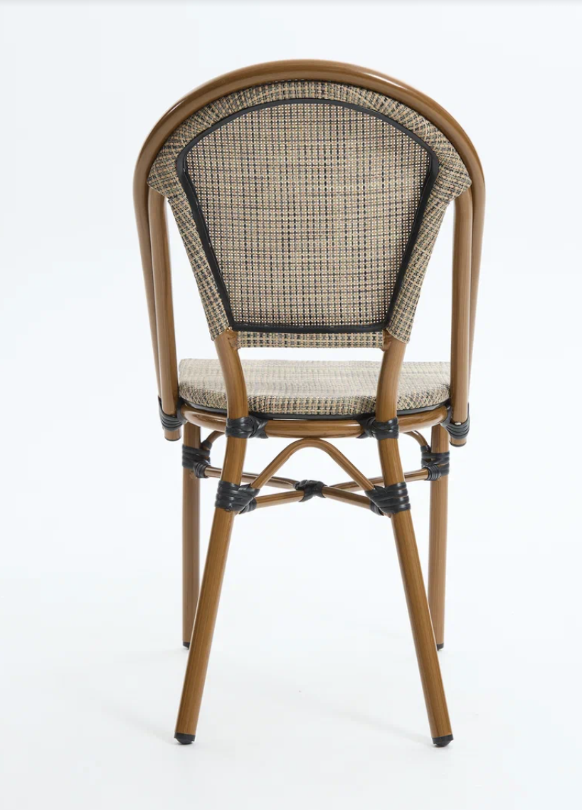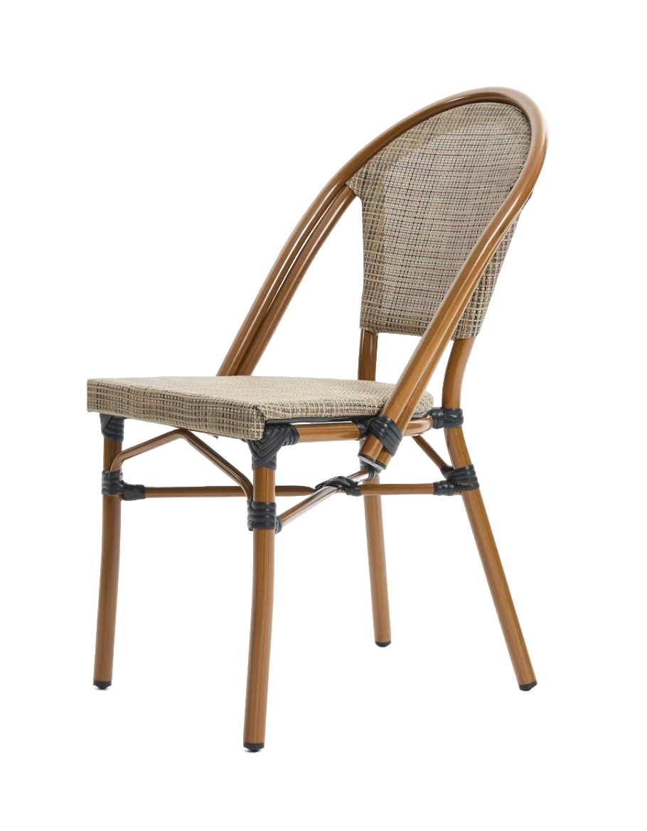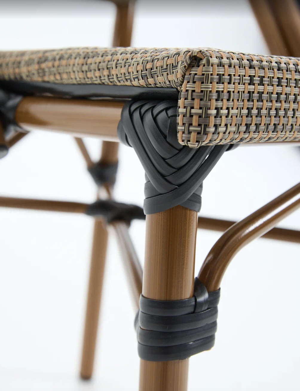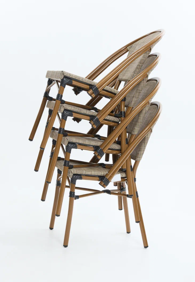 Преимущества: Плетеное французское кресло полиротанг бело-голубого цвета / алюминиевая труба диам. 28 мм с порошковым покрытием с имитацией тикового дерева ,