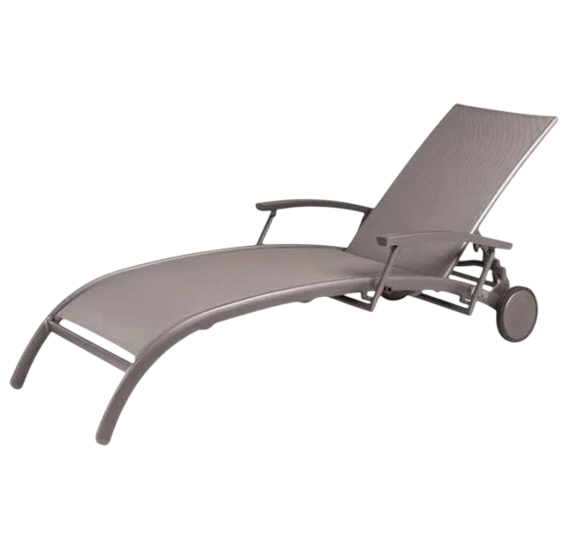 Шезлонг легко перемещать благодаря колесикам, что делает его удобным для транспортировки.