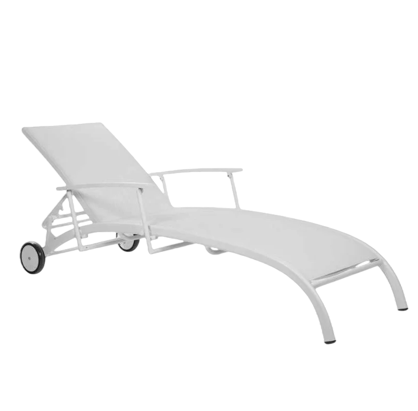 Обивка отсутствует, что обеспечивает гигиеничность и простоту ухода за шезлонгом.