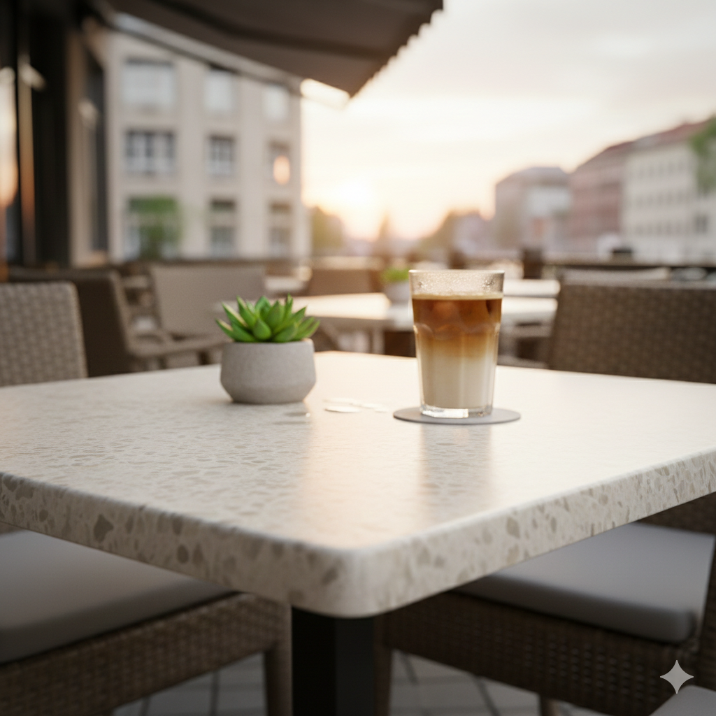 6. Экономическая выгода. Прочный и долговечный Werzalit становится экономичным приобретением для рестораторов и владельцев кофеен. Минимальные затраты на обслуживание и ремонт обеспечивают значительную финансовую выгоду, а длительное сохранение эстетической привлекательности служит гарантией долгого периода эксплуатации.