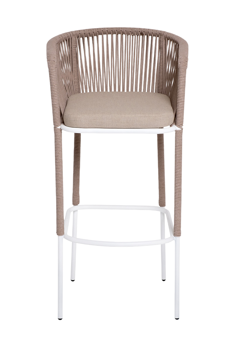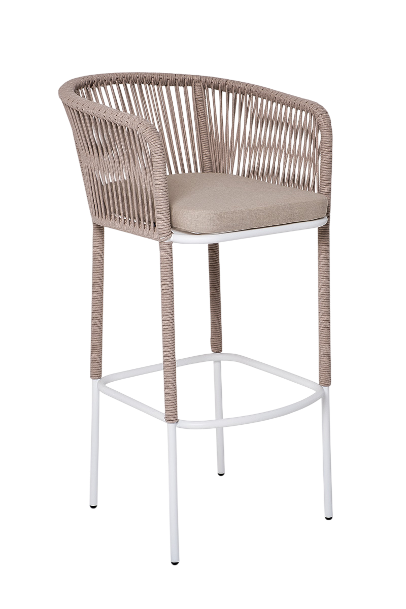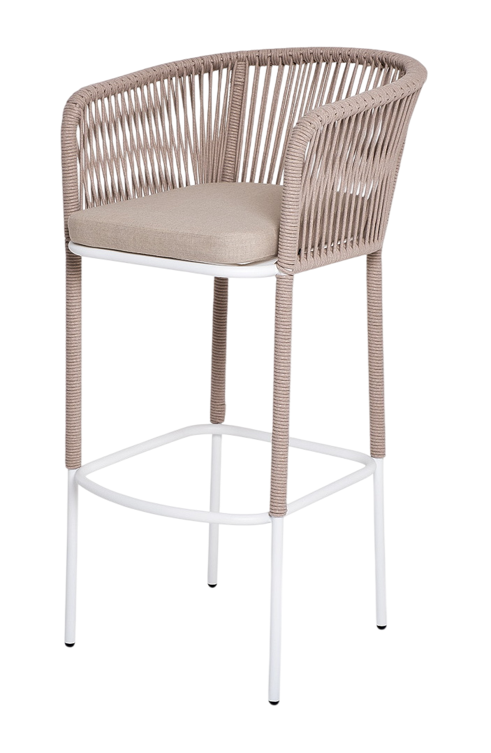 - Описание: Барный стул «Марсель» представлен в стальном каркасе, оплетен вручную эластичными синтетическими лентами из высокопрочных полиэфирных волокон, размер стула: 590×690×1100 мм. Высота сидения без подушки – 760 мм.
