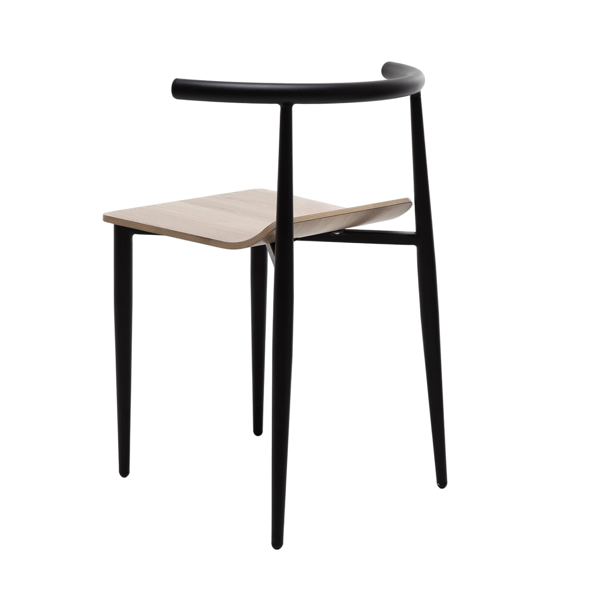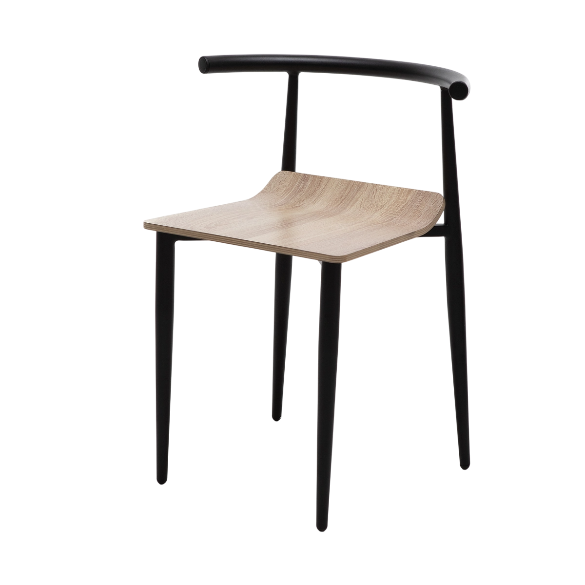 Сиденье выполнено из фанеры, облицованной пластиком HPL. Этот материал устойчив к влаге, ударам и царапинам, не боится перепадов температуры и прост в уходе. Даже при интенсивной эксплуатации стул сохраняет свой стильный и аккуратный вид.