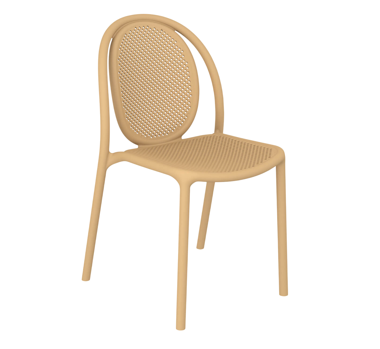 Стул выполнен из полипропилена с армирующими добавками, благодаря которым повышается жесткость и надежность.