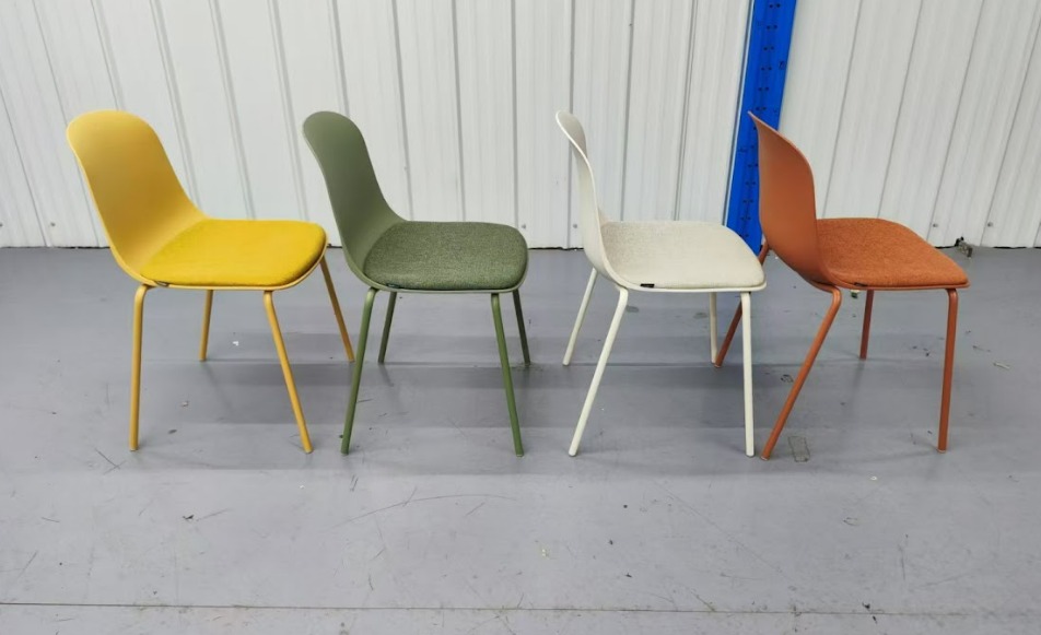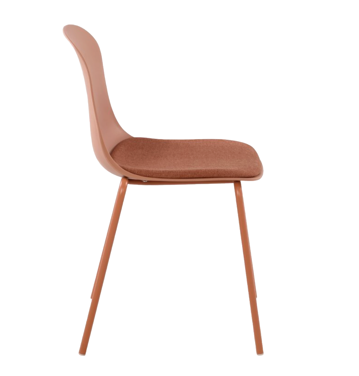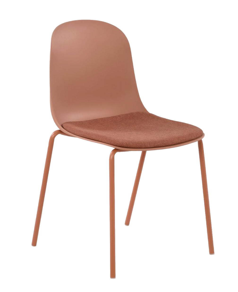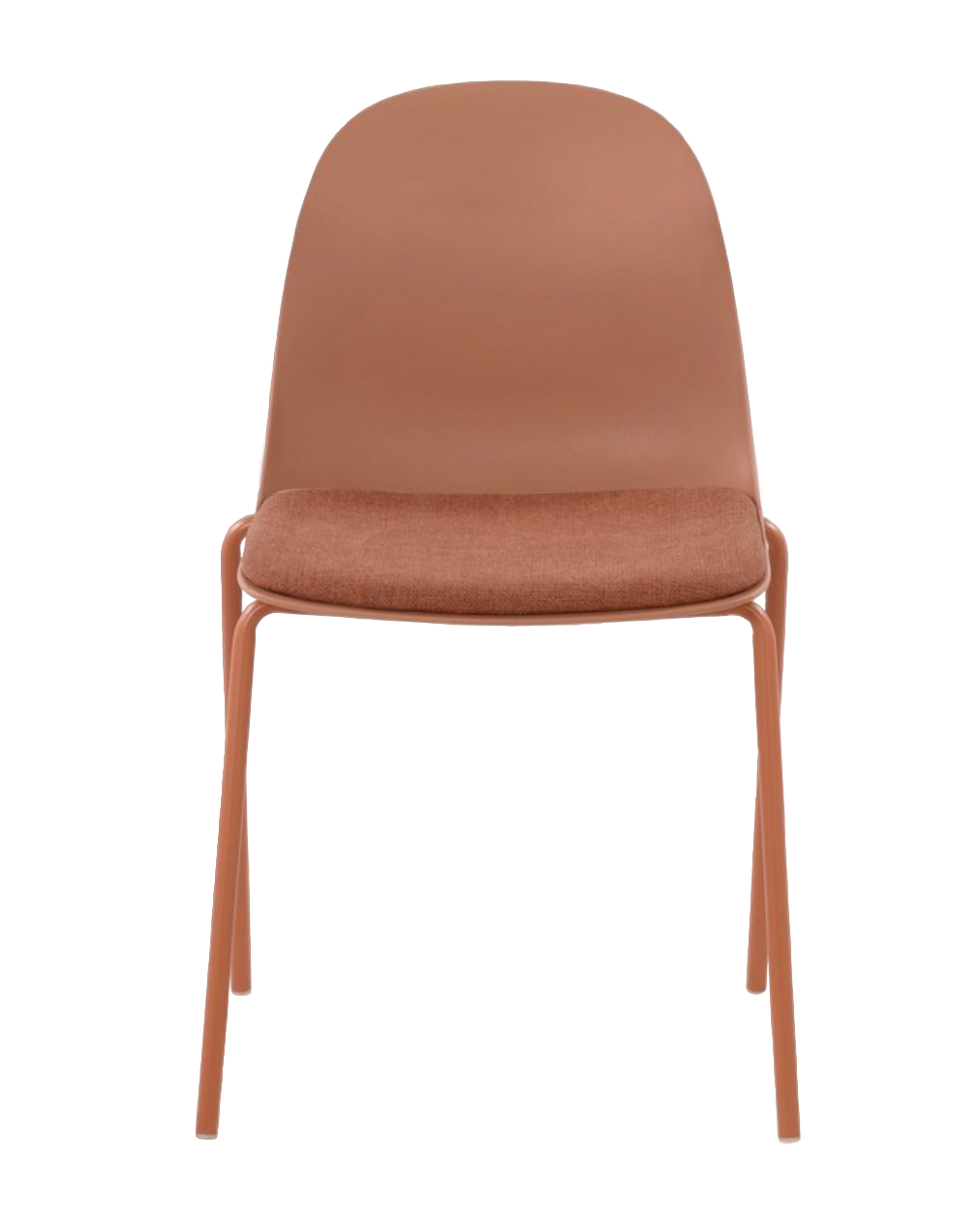 - Описание: каркас-цельно литой пластик, цвет терракот. Сиденье-накладное, текстильная обивка. Ножки-стальные, порошковая окраска в цвет пластикового корпуса.